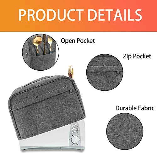 - Toaster Covers With Storage Pockets For Accessories: The front zipper pocket and side pocket for the appliance covers is easy for holding small handy tools attachments like toaster tongs, jam spreader knife,recipe,leftover bread. No ne ed to search through drawer whenever need something.