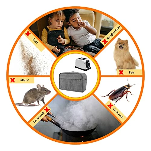 - Toaster Cover 2 Slice Protect Your Toaster Appliances: This appliance covers dust-proof cover for kitchen small appliance protect your toaster from dust, dirt, stains, spills, fingerprints, cat hair, and more. Also prevent the small appliance from tiny impacts. Avoid your pets jumping up or scratching the toaster. Small appliance covers for kitchen keep your toaster brand new and always ready to use.