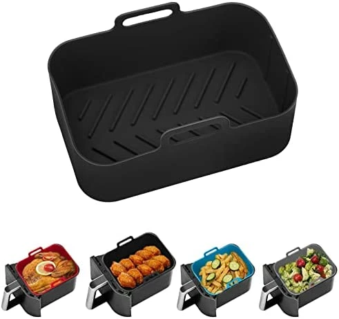 - ☺【Practical Design】MMH Silicone Air Fryer Liners with two handles, which can protect your hand from burning. And the groove designs improving air circulation and heat distribution,to make residual oil or grease easy to flow out, enjoy healthier food