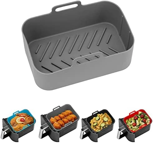 - ☺【Air Fryer Silicone Pots】Rectangle shape. 2Pcs gray color, size details: 19.5*12.7*7cm/7.67*5*2.75 Inches. Compatible with Ninja DZ201 Foodi Dual 8QT or More. ❤Tips: Please measure your air fryer before purchasing.