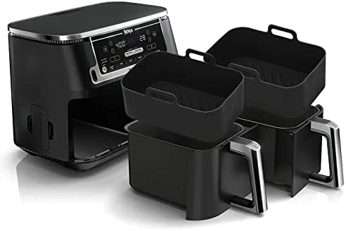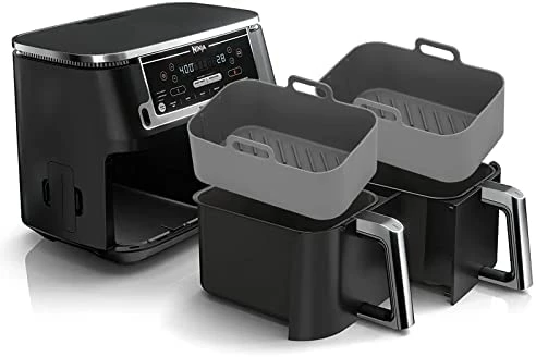 8 reviews for Best Pirce 🧨 2Pcs Air Fryer Silicone Pot Rectangular For Ninja Foodi Dual DZ201 8QT, MMH Reusable Silicone Airfryer Liner Replacement Baking Tray Basket Insert | Non-stick | Easy Cleaning | Food Safe | Gray 🤩