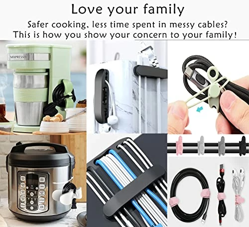 - 【Premium Softer & Durable Silicone Material】 Each cord holder for appliances is made of high-quality silicone, which is safe, environmentally friendly, non-toxic, durable. Softer flexible rubber material makes it perfectly fit on smooth planes and curved surfaces.