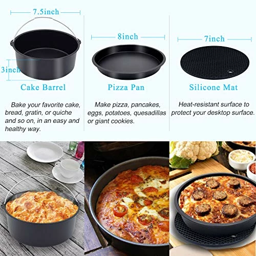 - [Perfect Fit for Most Air Fryers] These accessories perfect fit for Ninja foodi air fryers OP101,OP301,OP302. All standard air fryer 4.2Qt, 5Qt,5.3Qt, 5.5Qt, 5.8Qt,6.5Qt, 6.8Qt and more XL air fryers, compatible with most air fryer brands, like Gowise USA, Philips, Cozyna, Habor, OMORC, Secura, etc. Bigger Size, 8 inch air fryer accessories kit perfect fit for your large size air fryer, no waste of space of your air fryer. Meet the needs of the entire family.