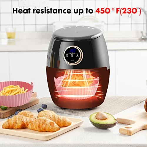 - γWide ApplicationγThis silicone air fryer oven accessories is not only suitable for air fryer, but also can be used for heating food in microwave oven, oven baking, steamer, pressure cooker, etc. The silicone air fryer bowl is perfect for DIY cakes, french fries, egg tarts, roast chicken, chicken wings, etc, and can also make fruit plate. The air fryer cookers liner is a great additional kitchen accessory.