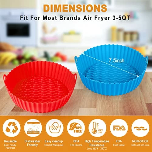 - γEasy to Clean & Dishwasher SafeγThe silicone air fryer liners keep your air fryer clean and enjoy delicious food without burning and sticking. Helps you save time and effort after cooking. SIZE: 7.5″, fits 3 to 5 QT air fryers.