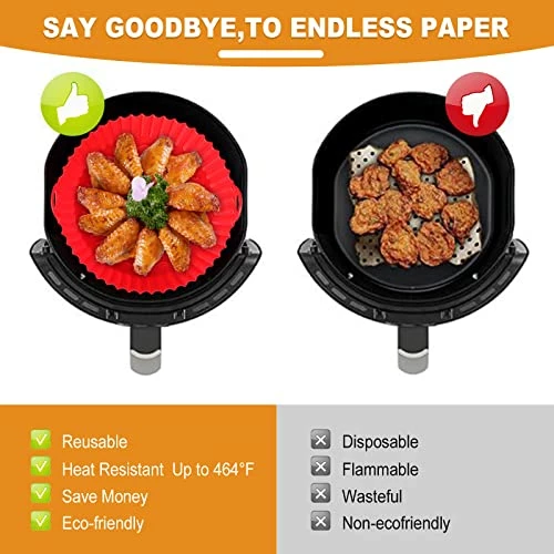 - γReusable and Save Moneyγ Reusable air fryer silicone pot can replace disposable parchment paper. Our air fryer silicone liner is reusable and will not warp or break after hundreds of uses, making it the most valuable air fryer accessory.