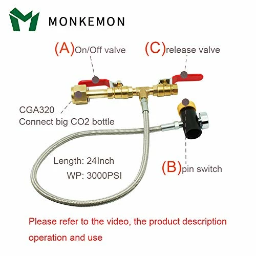 - 【High Quality Material】The 24 inch hose is braided by high quality stainless steel and is tightly connected with 100% solid brass fittings, with good air tightness, 3000PSI working pressure, strong and durable, safe and reliable. The refill adapter is equipped with a pressure gauge and has two on-off valves (for filling and venting) for easy and safe use.