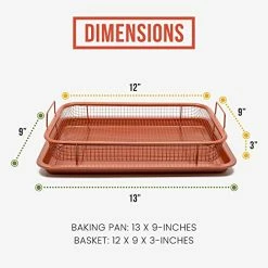 - โ COOKING SIMPLIFIED. Use the crisper basket and tray together to roast and fry sides or entire meals! Or use the copper tray alone as a baking sheet for cookies, biscuits, rolls, and more. Large, easy grip handles help keep you safe from accidental burns and grease spills. While non-stick coating and dishwasher safe copper make meal-time effortless and clean up a breeze.