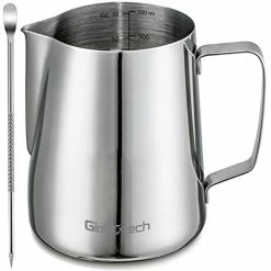 - γConvenienceγThis 12oz milk frothing pitcher has engraved the liquid measurement marks inside the cup, easy to read, perfect for 1 or 2 cups of cappuccinos or espressos needs.
