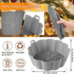My air fryer is a pain to get all the way cleaned, this is a genius idea. The 6.5-inch ones work best for my fryer. It holds about 1 quart of food, suitable for 1 to 3.5 QT or more giant air fryers! Also available in a bigger size as well.Easy to clean, dishwasher and microwave safe. The round silicone air fryer lining the baking tray bowl makes delicious foods without burning and creating a sticky mess in your fryer. The reusable air fryer silicone basket is more environmentally friendly and saves more than flammable disposable air fryer paper liners.