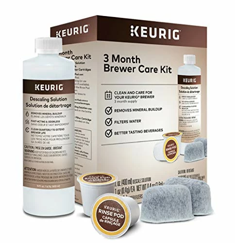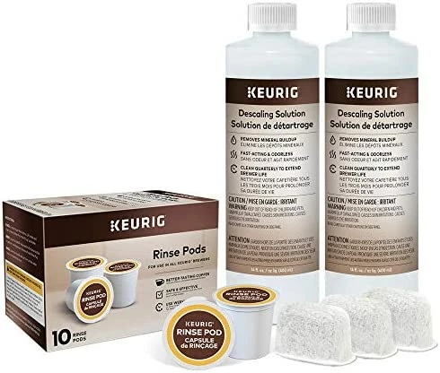 - INCLUDES: 4 Keurig Rinse Pods, 1 Descale Solution, and 2 Water Filter Cartridge Refills