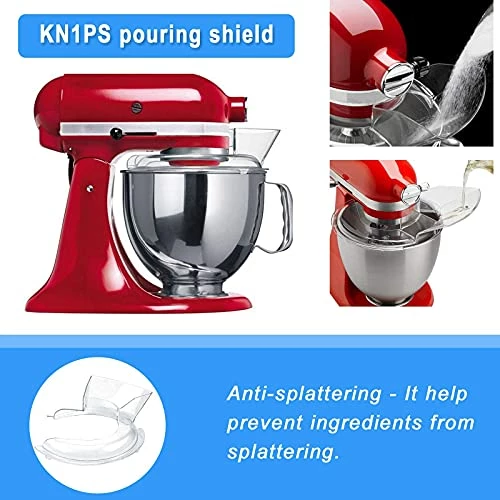 - 1-âśKn1ps Pouring Shield -This one-piece casting cover sits on top of the bowl to help prevent ingredients from splattering. it will not scatter to the edges of the bowl or making a mess.A must have attachment for kitchen-Aid stand mixer
