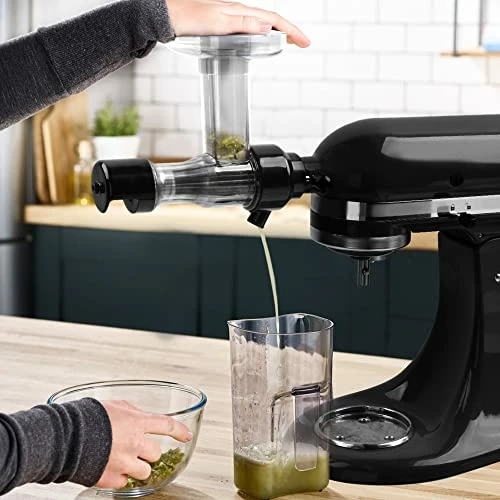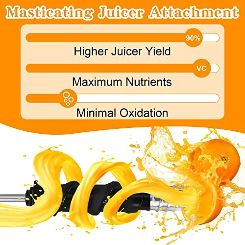 - Easy to Load, Unload and Clean :- Assemble or disassemble within 1 second. Simply connect the chewing juicer accessory to the power hub of KitchenAid stand mixer. Then put the cut fruits and vegetables into the food feeding tube, and the blender will send out healthy juice. It does not require a dishwasher or a brush to clean it. The unique design allows you to wash it quickly after just a few minutes of flushing.