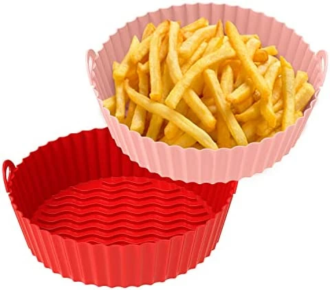 Discount ๐งจ OUTXE 2-Pack Silicone Air Fryer Liner 7.5inch Reusable Air Fryer Silicone Basket Heat Resistant Easy Cleaning Air Fryers Silicone Pot Round For 3 To 5 Qt For Air Fryer Oven Accessories (Pink+Red) Red+pink ๐