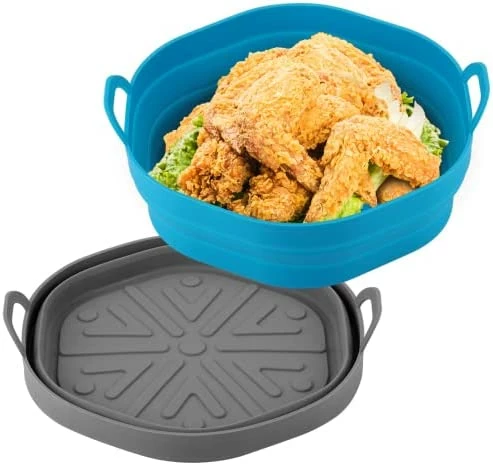 - ใFood Grade Silicone Material ใ Air fryer silicone basket is made of safe food-grade silicone. It’s non-stick, non-toxic, BPA free, heat resistant up to 464 โ (240โ), colorfast, odorless, reusable, eco-friendly and save money. Better than disposable parchment papers.