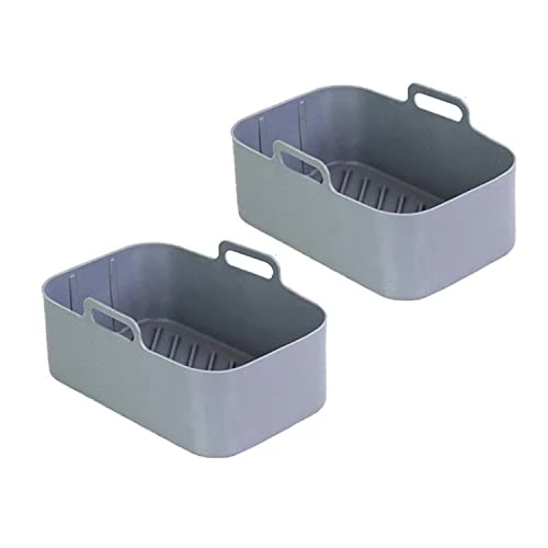 - γPractical designγ: Our silicone liner for the air fryer is designed with handles on both sides to protect your hands from burns when taking out it. The dimension is 7.67*5*2.75 inch, and it fits 8QT double basket air fryers.