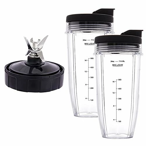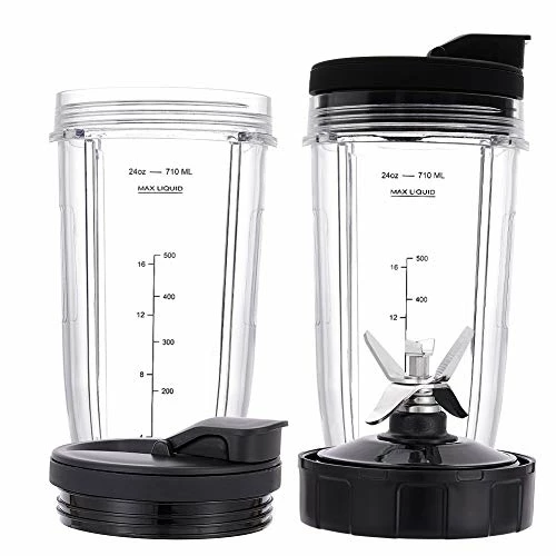 - 5-IN-ONE KIT: 2x 24oz ninja replacement cups with 2x spout lids, 1x ninja blade replacement (male version). Ideal replacement parts for your nutri ninja blender. Made of high quality ABS and BPA-free. Replace your old or damaged blades and blender cups to give your ninja blender a new look.