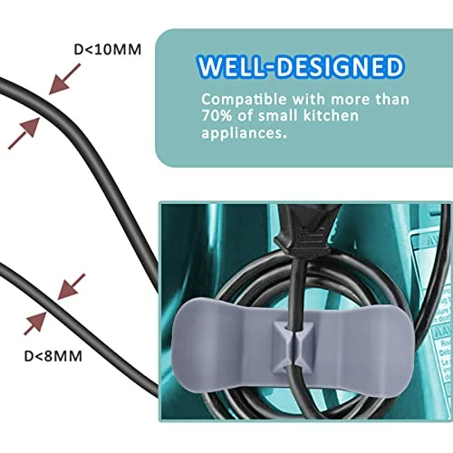 - ?[Fits Cord Size] This appliance cord holder is suitable for small Kitchen Appliances such as blenders, coffee machines, rice cookers and more. This cord keeper can be wound in a size of 0.3in~0.4in, it can help you maintain a tidy home space.