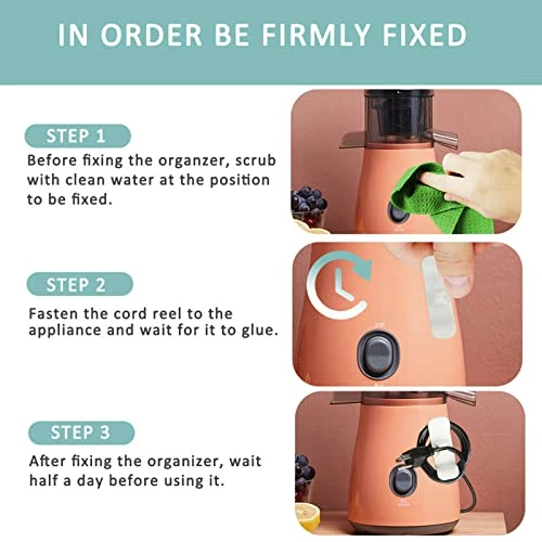- ?[Strong Adhesive] Using a heat resistant adhesive, the cable storage adheres on most surfaces. Note: If the appliances surface is arc-shaped, stick it vertically to increase the pasting area. For best result, Please don’t re-paste, be careful with a one-time installation.Allow no less than 6 hours to dry before use.