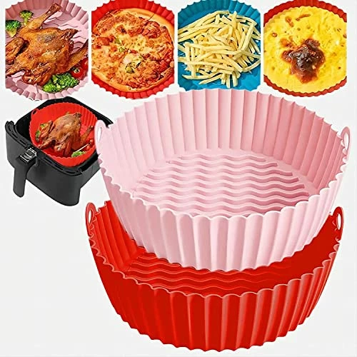 - [ESSENTIAL KITCHEN ACEESSORIES]- 2 pack 8.5-inches reusable Eco-friendly air fryer silicone pots save your money. No more cleaning the air fryer basket, making you more willing to use the air fryer and enjoy delicious food at the same time.