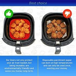 - [Best Choice for Air Fryer] These air fryer liners disposable for ninja air fryer accessories are the real deal for quick air fryer cleaning. (Compared to air fryer perforated parchment paper, food crumbs will fall into the air fryer basket as well; compared to air fryer silicone liners basket, because the silicone air fryer liners need to be cleaned, it just transfers the cleaning object.)